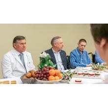 По итогам визита губернатор Александр Дмитриевич Беглов вручил руководству больницы Святого Великомученика Георгия сертификат на приобретение операционного стола.