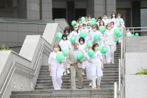 7 июля в Городской больнице Святого Георгия выписали последнюю пациентку, вылеченную от новой коронавирусной инфекции COVID-19, которая продолжит восстановление во вновь открытом отделении реабилитации стационара, и в знак завершения борьбы с пандемией, а также возвращения к оказанию многопрофильной медицинской помощи, провели флеш-моб, в котором участвовали более 150 сотрудников: они лопнули воздушные шары с изображением коронавируса.